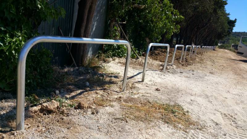 Cette fabrication d’ arceaux spécifiques à été étudié pour être scellé dans de la terre avec une profondeur de scellement plus importante. En effet un scellement de 500 MM de profondeur est préconisé dans un terrain naturel. les trous de scellement vont être réalisé à la tarière.